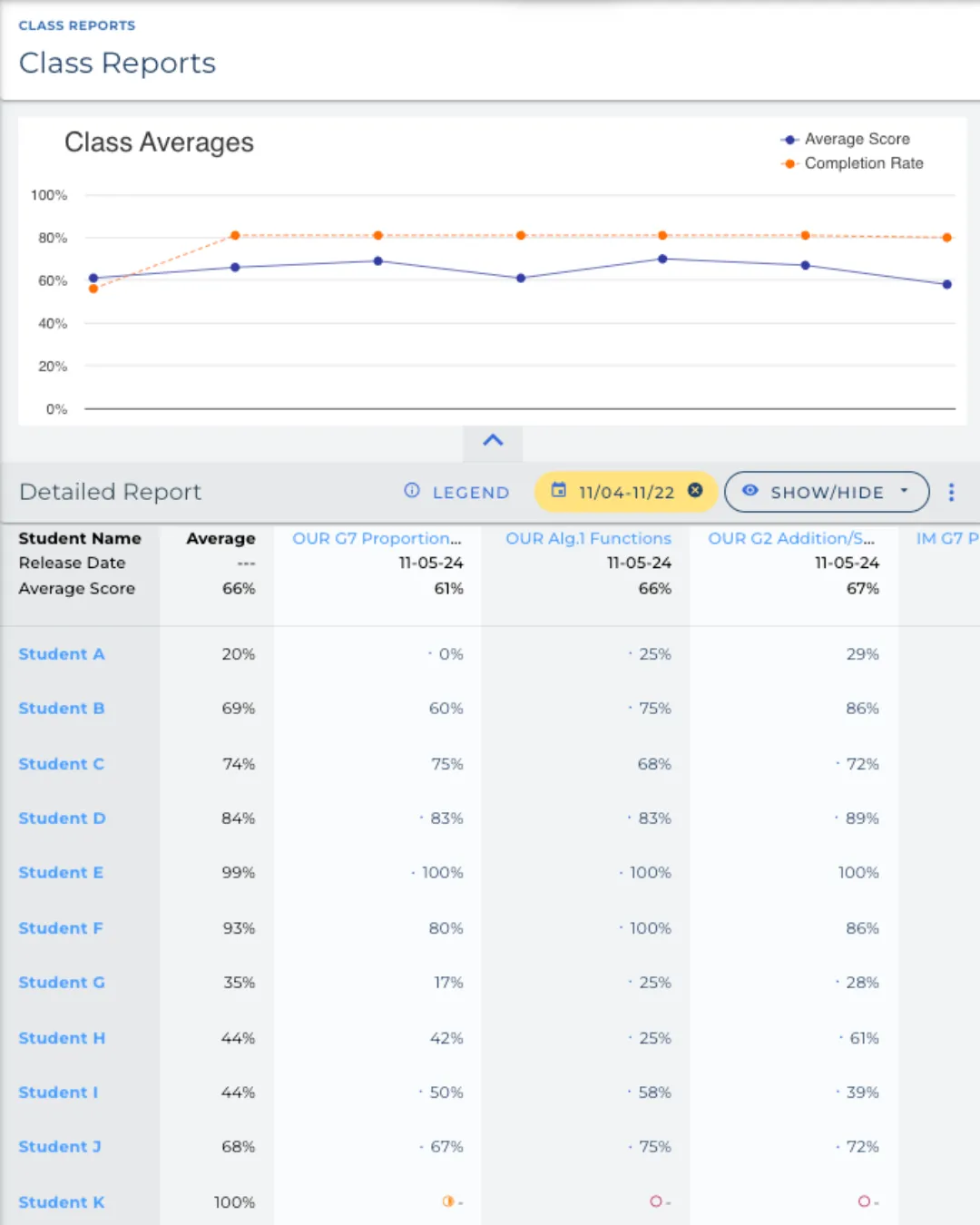 In the beginning, keeping it simple can free up the time you need so that you can later bring those ideas to fruition. This is where a math assessment tool can really help a first year teacher. In ASSISTments, the user interface is really simple and includes student support features like hints and immediate feedback - saving you time on grading! The real time data reports (shown below) also take the guesswork out of pinpointing student learning needs.