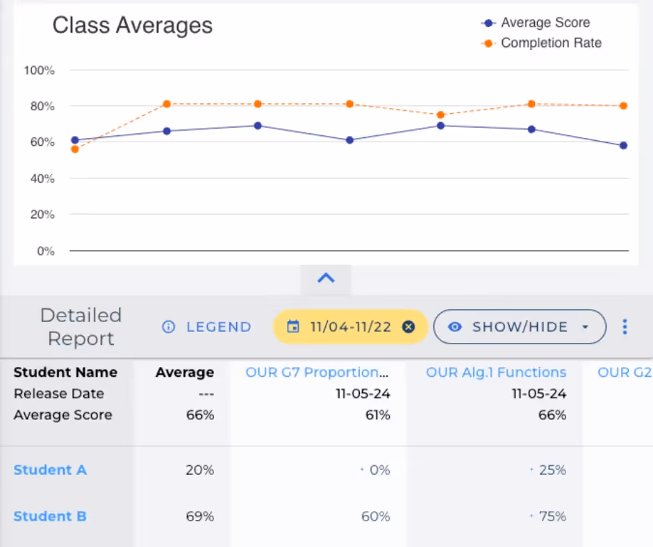 One of the biggest challenges of teaching a summer math program is the high volume of content that needs to be covered in a short amount of time. ASSISTments can help by providing immediate and actionable data through the class report. This data allows teachers to quickly pinpoint areas where students need additional support without having to process a large volume of student work manually. It also makes it easier to track assignment completion rates and identify struggling students. Teachers can then leverage the builder feature to build assignments tailored to the specific needs of their students, ensuring that each student gets the support they need to succeed.