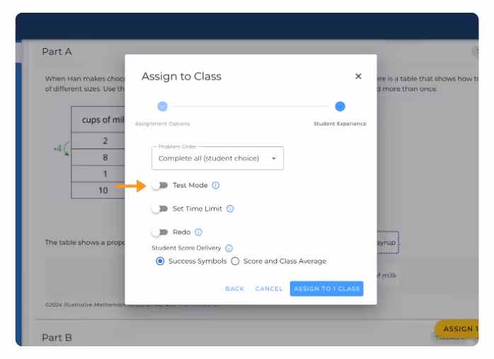 This guide explains the difference between assigning in Practice Mode vs Test Mode and explains how to assign in Test Mode as well as change default settings.