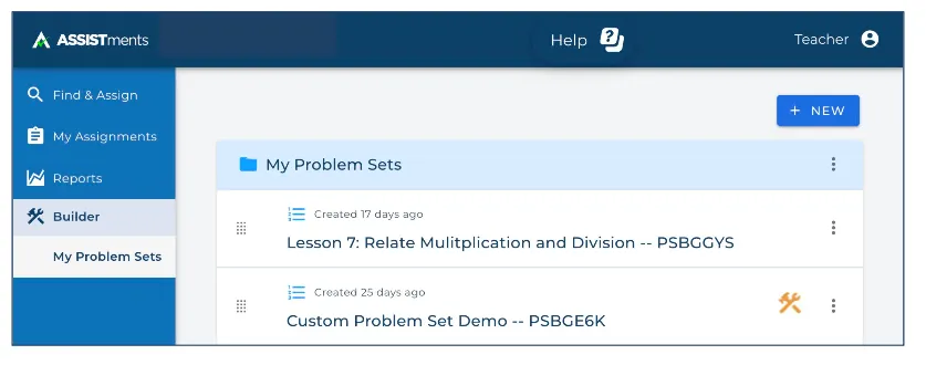 Click any existing problem set to access that problem set in the Builder.