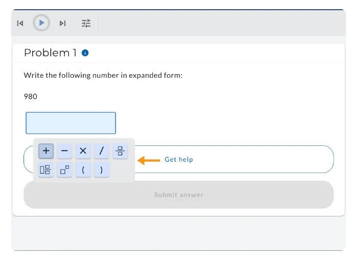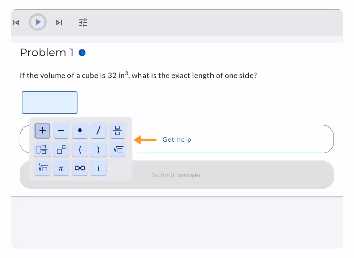 Note: The Math Keyboard appears only on fill-in problems and requires no teacher setup.