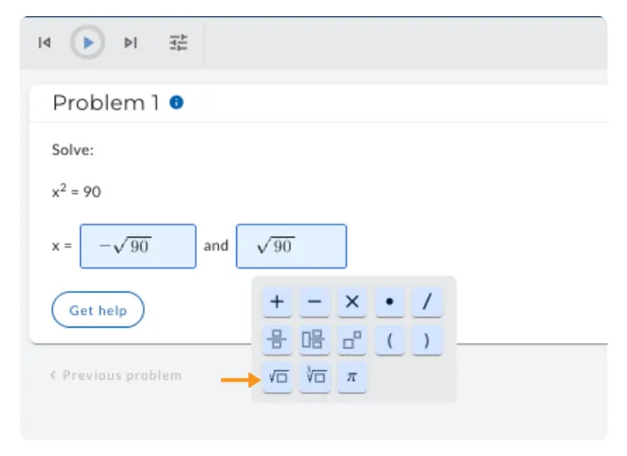 A: The Math Keyboard appears below the answer box whenever students are asked to enter a numeric or algebraic response in a fill-in problem.