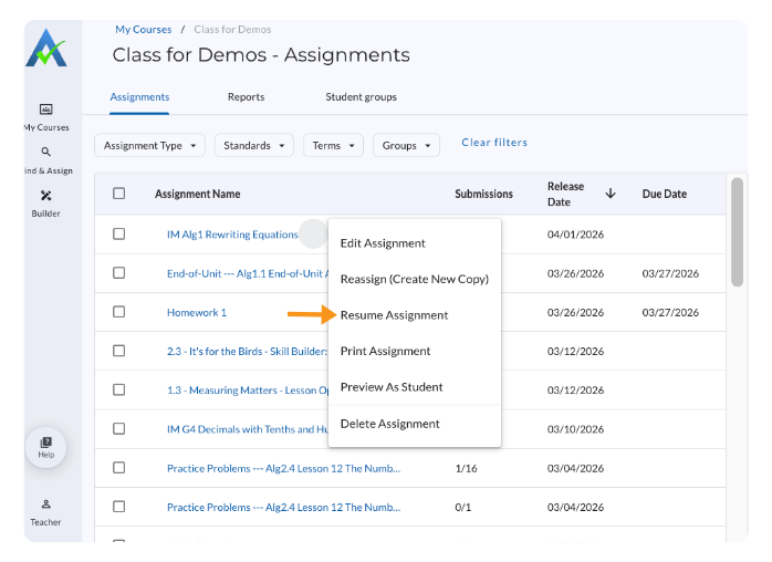 How to Resume an Assignment