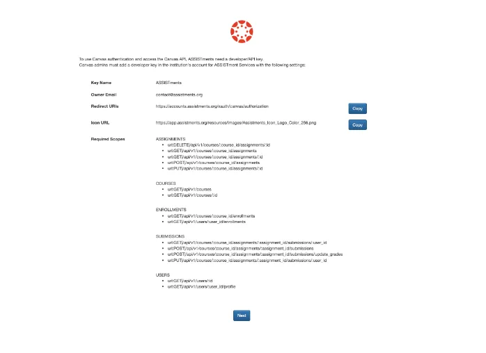As our ASSISTments Canvas integration evolves, we may require additional API endpoints to function correctly —whether it's to pull grades, create assignments, or sync user data. These capabilities are controlled through scopes. Our team will send out an email when scopes need to be updated, and you can utilize the directions below to help you update the necessary scopes.