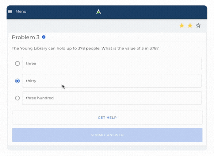 The primary reason for using Skill Builders is to determine if students have mastered a particular Common Core standard (usually a procedural skill) by seeing if they can answer three questions in a row correctly. They are a helpful supplement to your core curriculum, and quick and easy to assign!