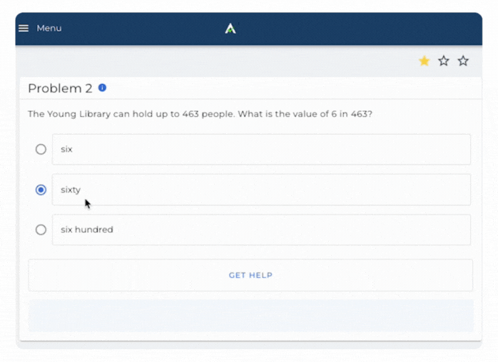 Note: Students will receive a random set of problems targeting the standard you (the teacher) selected.