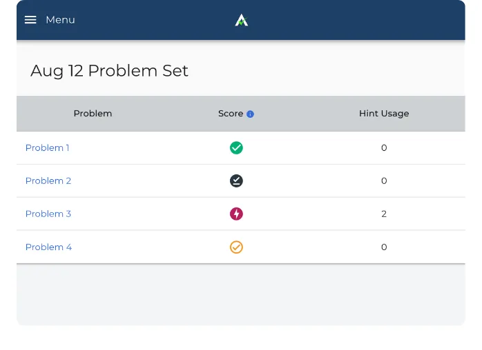 Student Choice allows students to see all problems at once and decide the order in which they complete them, giving them flexibility to start with problems they feel most confident about and build momentum toward more challenging ones.