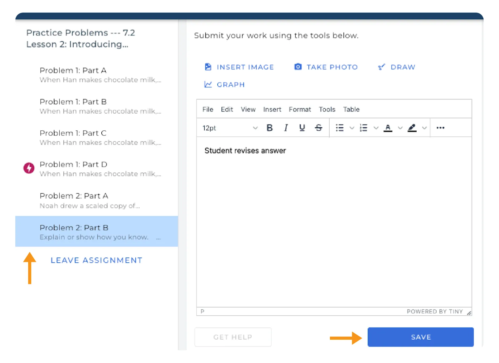 If a student wants to edit the open response problem before they submit their assignment, they can select the open response question, edit what they have written in the open response box, and resubmit their answer.
